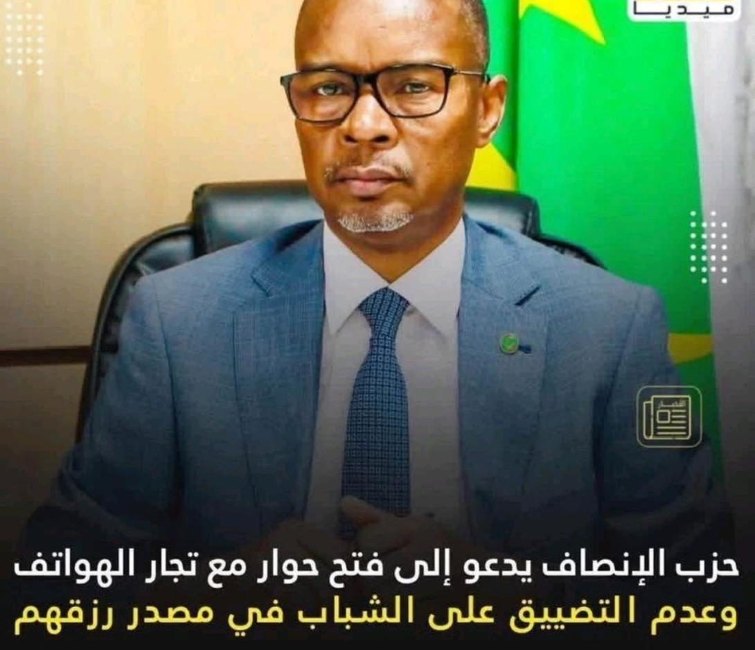 دعا حزب الإنصاف، الحزب الحاكم في موريتانيا، الحكومة إلى مواصلة الحوار مع الفاعلين في قطاع الهواتف المحمولة، خصوصاً الشباب العاملين في الأسواق ونقاط البيع، والاستماع إلى انشغالاتهم ومطالبهم، بما يضمن تطبيق الإصلاحات المتعلقة بتنظيم القطاع بطريقة تدريجية ومتوازنة تراعي الظروف الاقتصادية والاجتماعية للمواطنين.