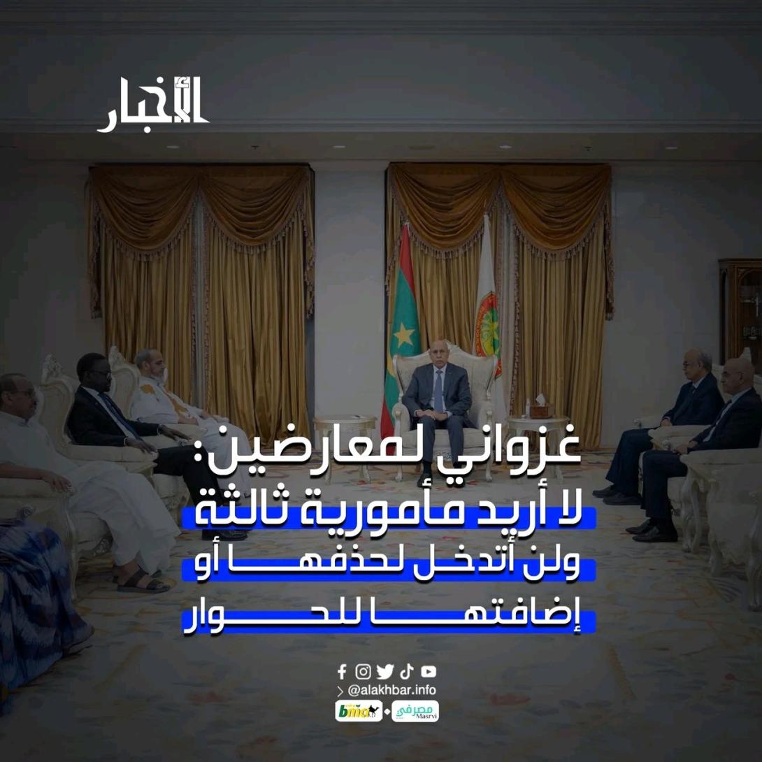 وقال ولد الغزواني ردا على سؤال من أعضاء مكتب مؤسسة المعارضة حول الموضوع، إن الحوار يقتضي النقاش والتعاطي الإيجابي حول المواضيع الخلافية، وينبغي أن يتم نقاشها بوعي ونضج، ولا يناسبه أن تكون هناك جهة لديها أمر لا بد لها منه، وأخرى لن تقبله تحت أي ظرف.