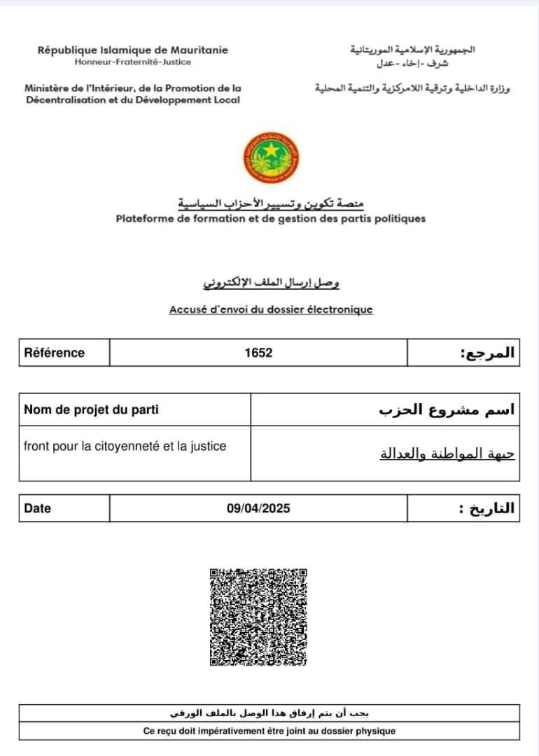 .حصل حزب جبهة المواطنة من منصة تكوين وتسيير الأحزاب السياسية على الوصل رقم 1652بتاريخ 09 أبريل 2025، وبذلك تكون الجبهة أول حزب يحصل على وصل إيداع الملف كخطوة مهمة في طريق ترخيص الحزب.