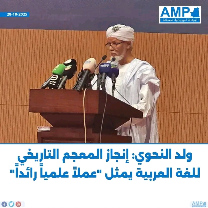 ث ،قال رئيس مجلس اللسان العربي في موريتانيا، الخليل النحوي إن إنجاز المعجم التاريخي للغة العربية الذي احتفت به اليونسكو يمثل "عملاً علمياً رائداً"