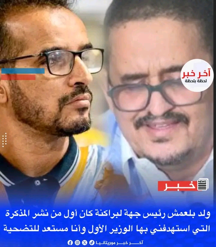 ولد بلعمش رئيس جهة لبراكنة المقرب جدا من الوزير الأول المختار انجاي كان أول من نشر المذكرة التي استهدفني بها الوزير الأول